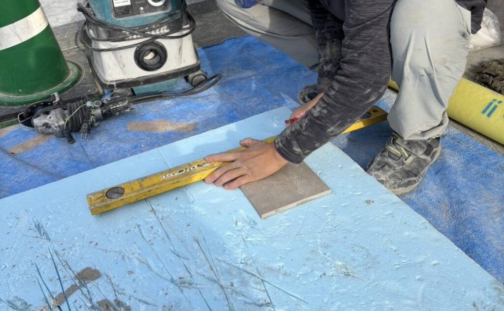 エントランス床 タイル貼り ~現場風景・カットの様子~