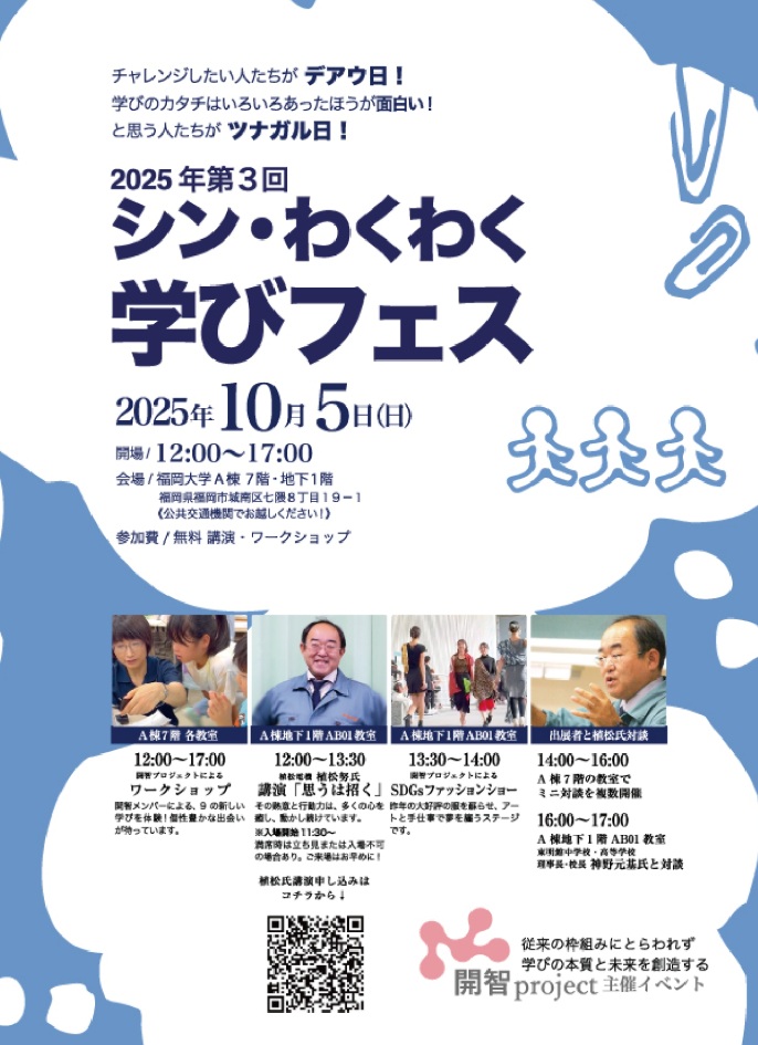 2025年10月5日に福岡大学で開催される 第3回シン・わくわく学びフェスに参加させていただくことになりました。